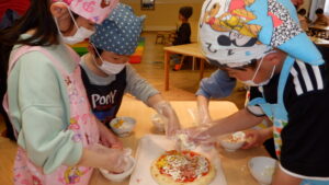 どんどん組が中心になり、ソースをぬったり、どの具材をどこにのせるか話し合ったり、2回目という事もあり