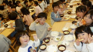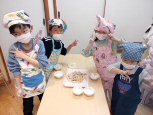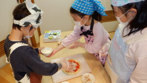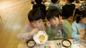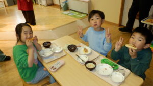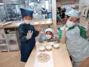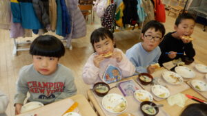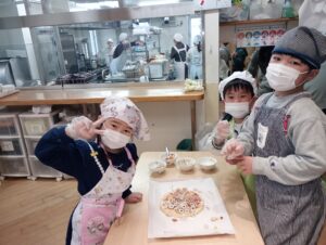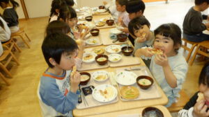 給食室でおいしく焼き上がりました。