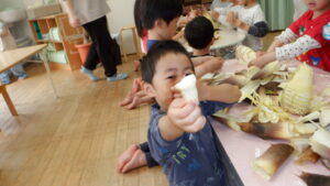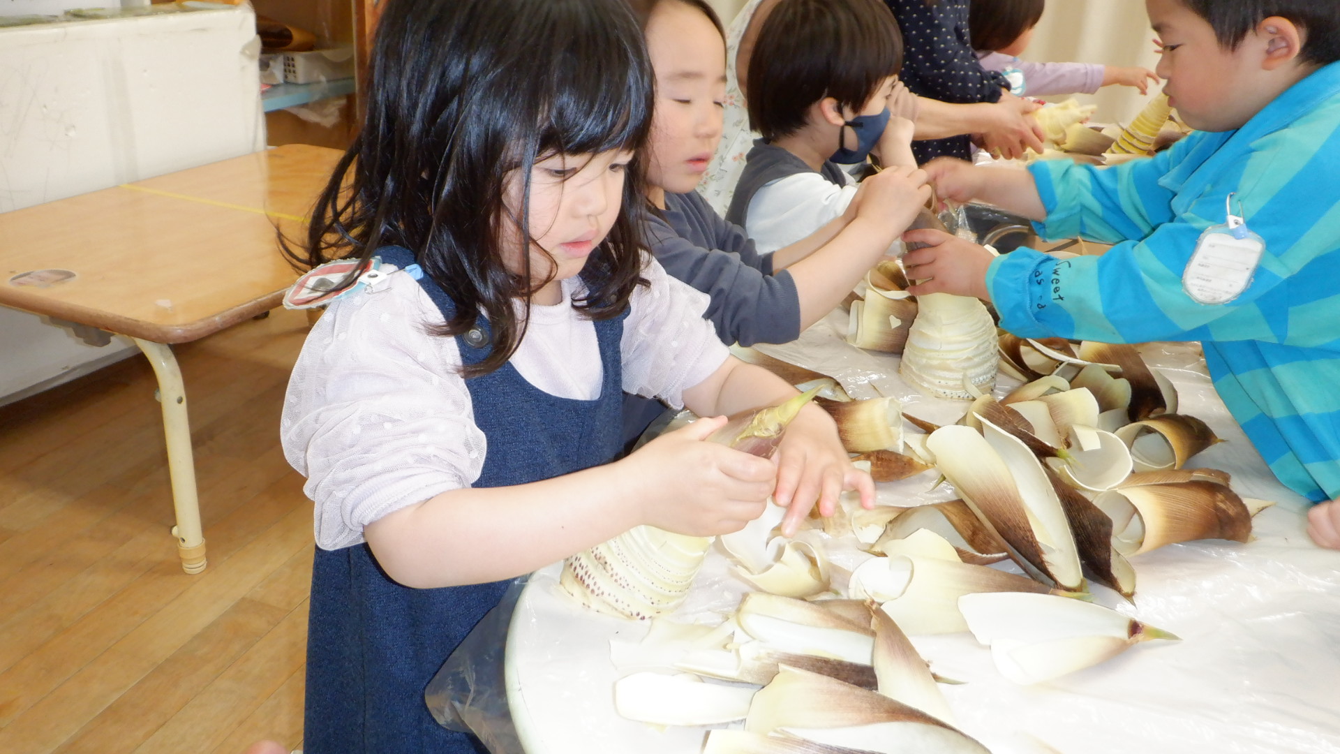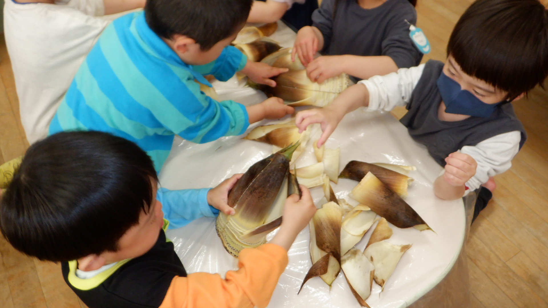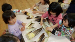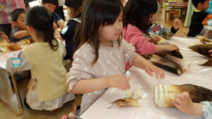 前回のどんどん組さんと同じく、筍の匂いが気になる子どもたち。