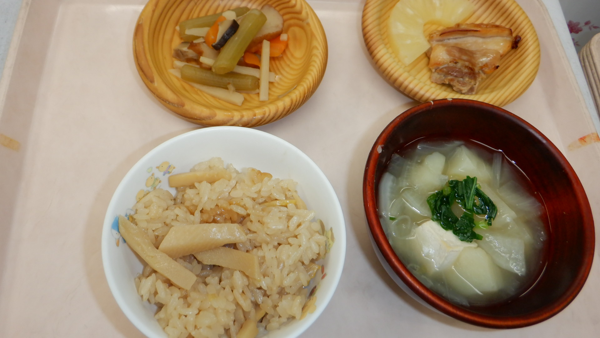 子どもたちがお手伝いをしてくれた“筍”と“ふき”はお昼の給食でおししくいただきました!