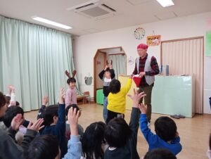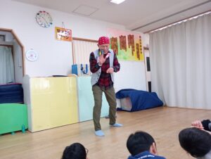あそびの教室は、みんなが大好きなノームさん(ノーム芳賀さん)が子どもたちの成長に合わせたいろんな遊びを教えてくれたり、見せてくれます。