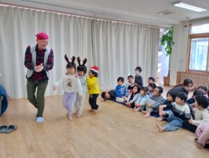 クリスマス前だったので、トナカイのカチューシャやサンタの帽子をかぶって電車ごっこをする遊びもしました🎄