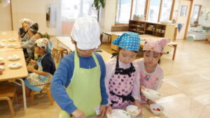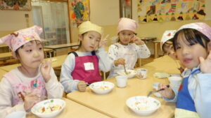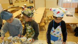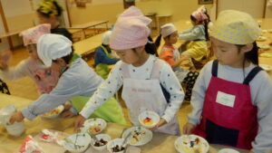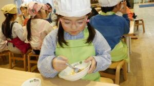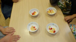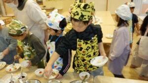 5歳児どんどん組、おやつのトライフルを自分で作ってみました!