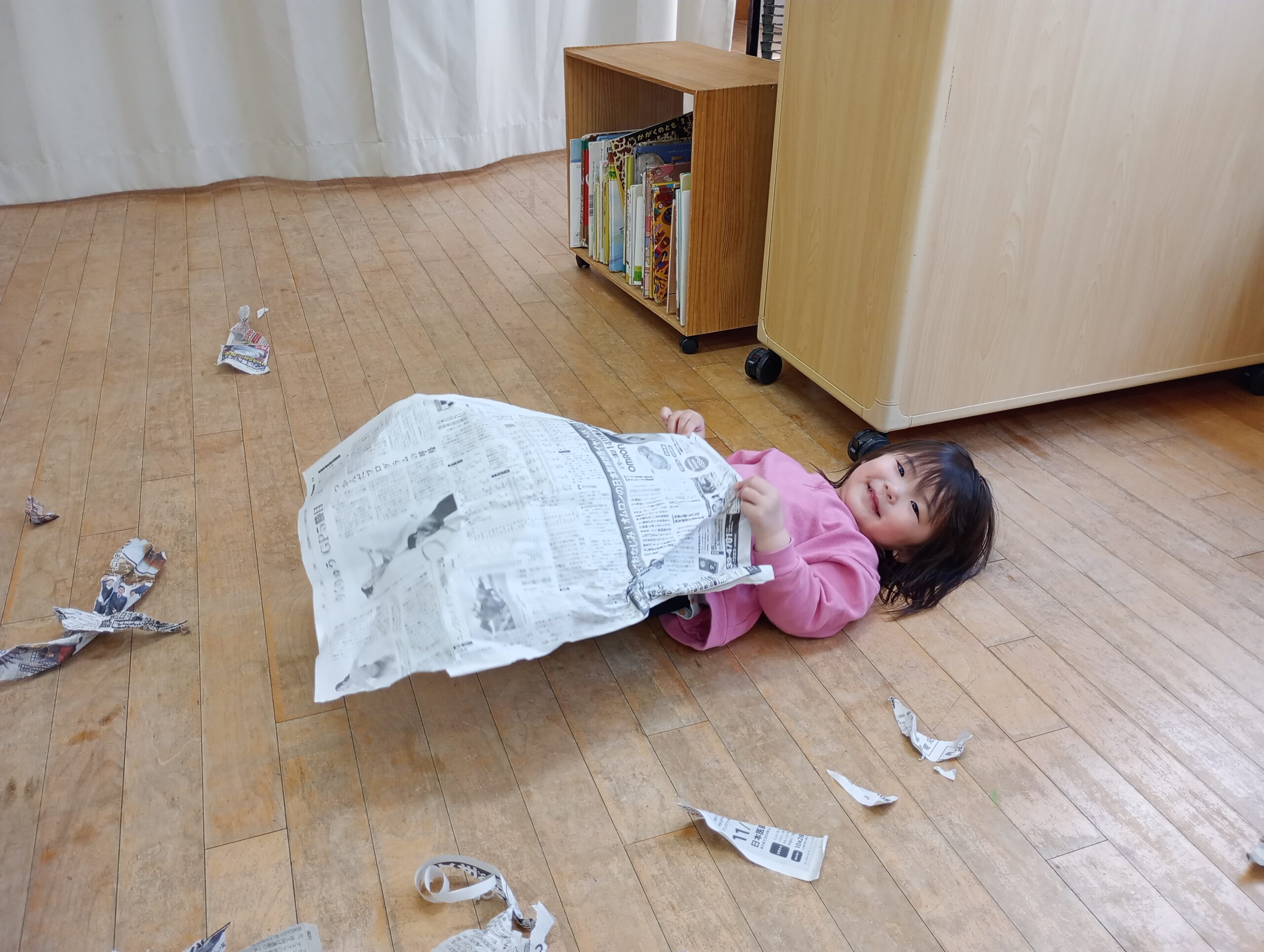 新聞紙をお布団にするお友だちもいました(^o^)ノ