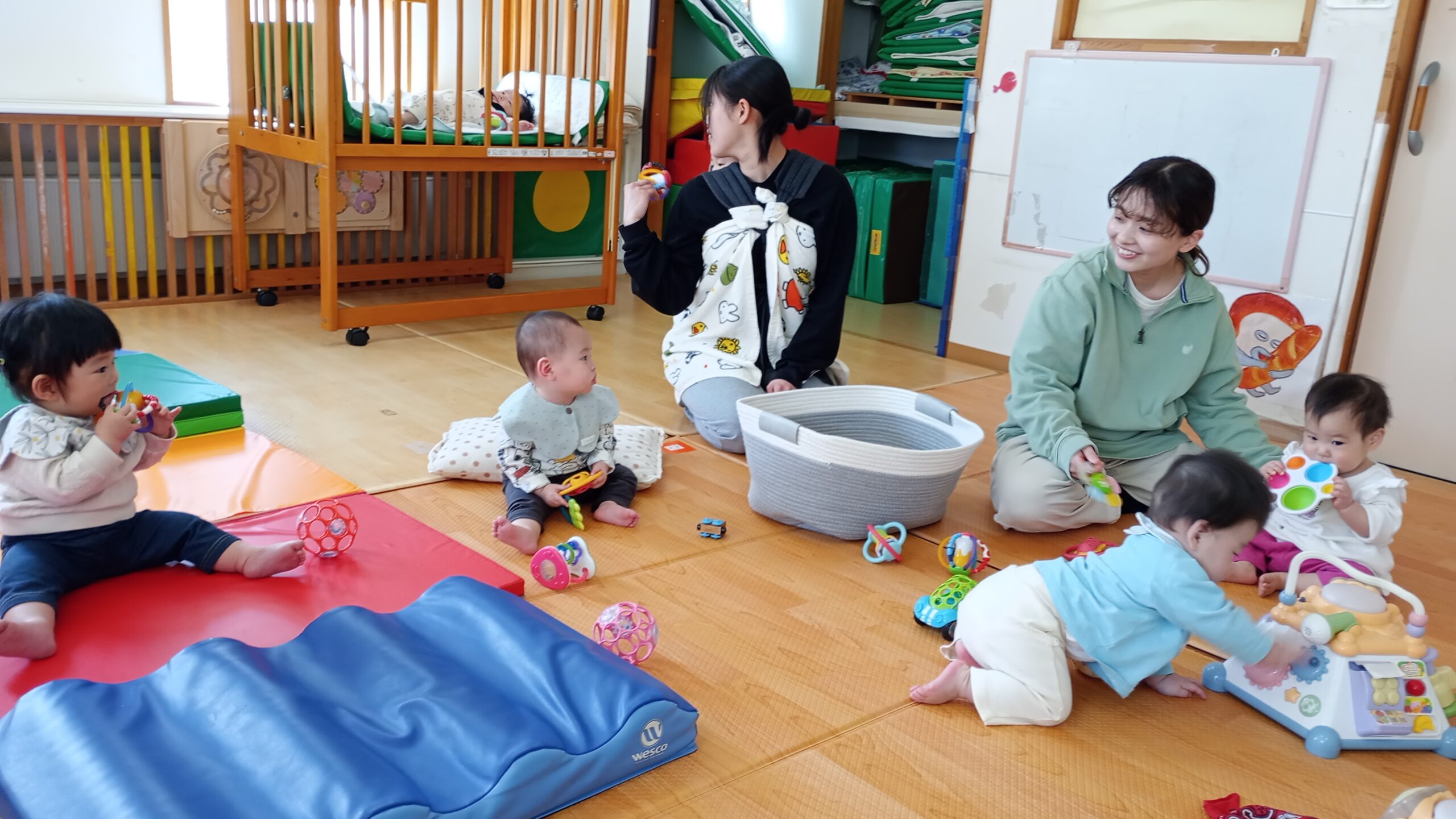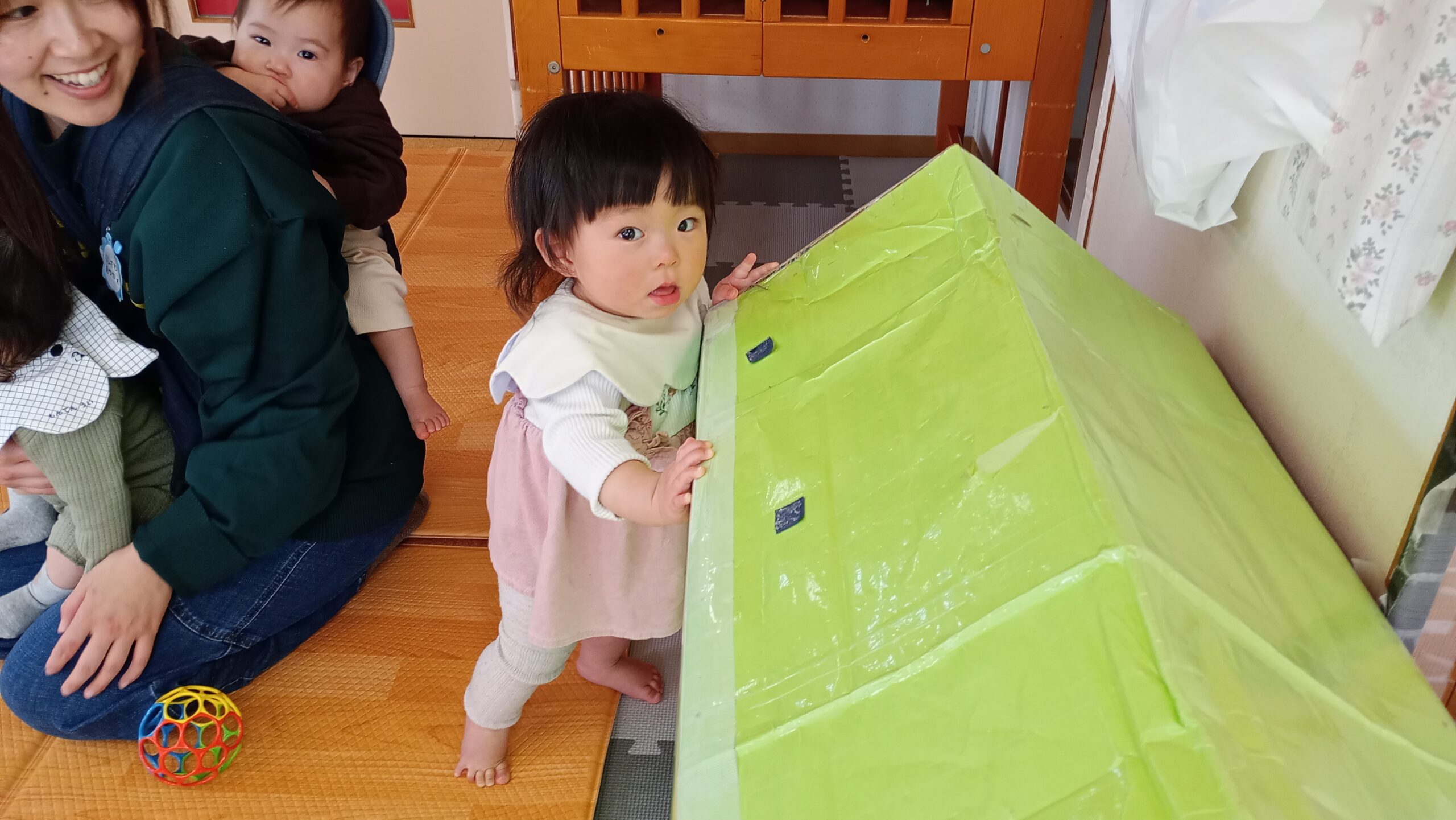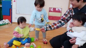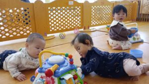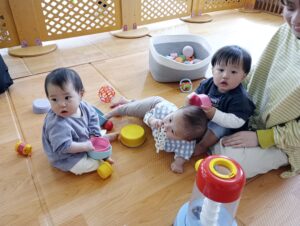 4月から入園のすやすやさん。ドキドキいっぱいのすやすやさんでしたが、今では安心して保育者やお友だちと楽しく遊ぶ姿も増えてきましたよ!